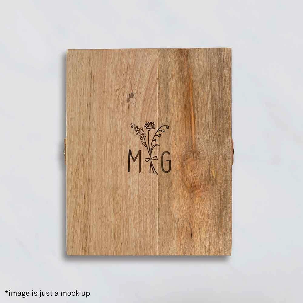 The personalisation features a sweet little bunch of wildflowers, and you can personalise with two initials. Use your first and last name or add the two initials of your favourite couple to make it a romantic surprise!Â