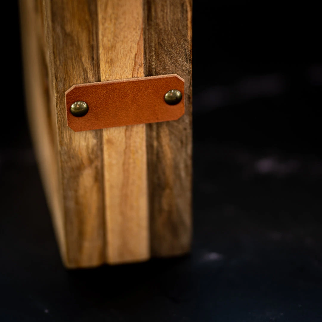 - Material:Â Mango wood, leather