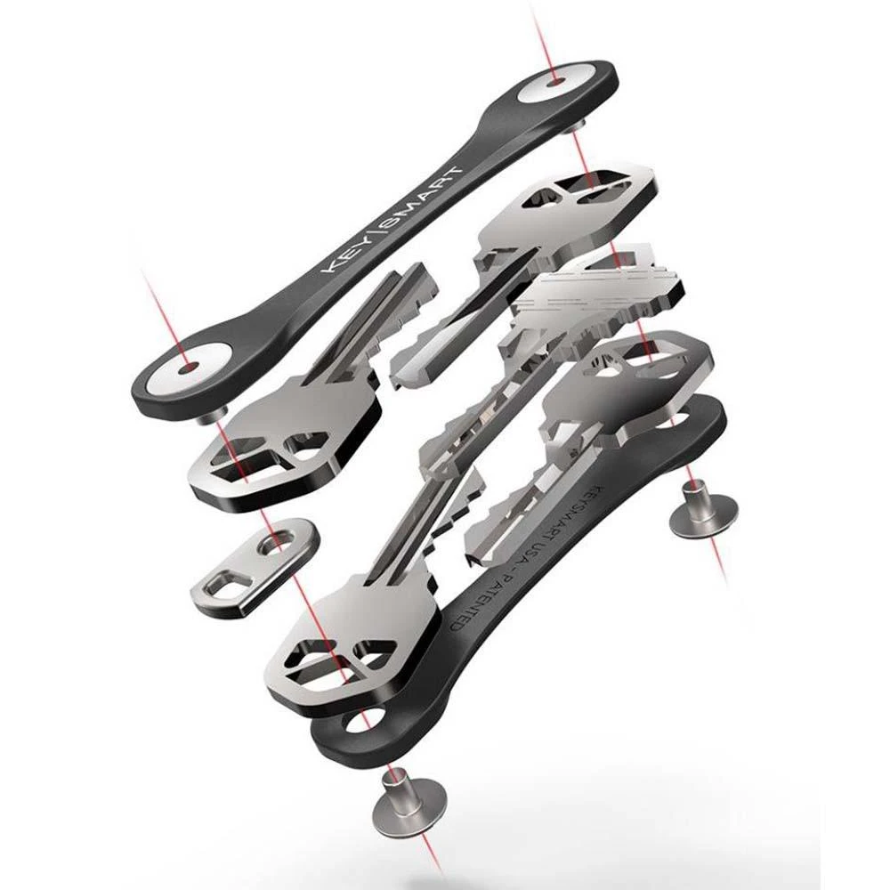 The KeySmart Flex holds up to 8 keys stacked neatly, each one folding out in the swiss style for easy access. It will fit comfortably into your pocket or purse without that jingling and jangling you get from normal keychains.Â